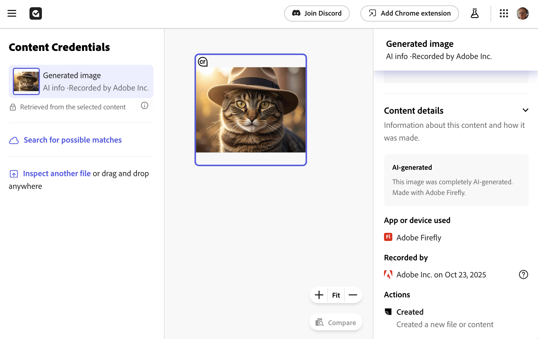 For more information, see Inspect Content Credentials on Adobe HelpX.